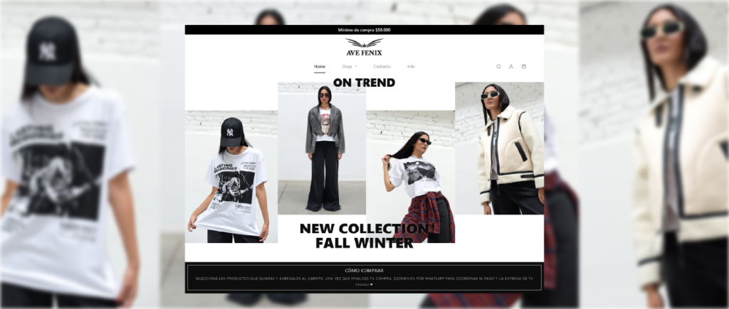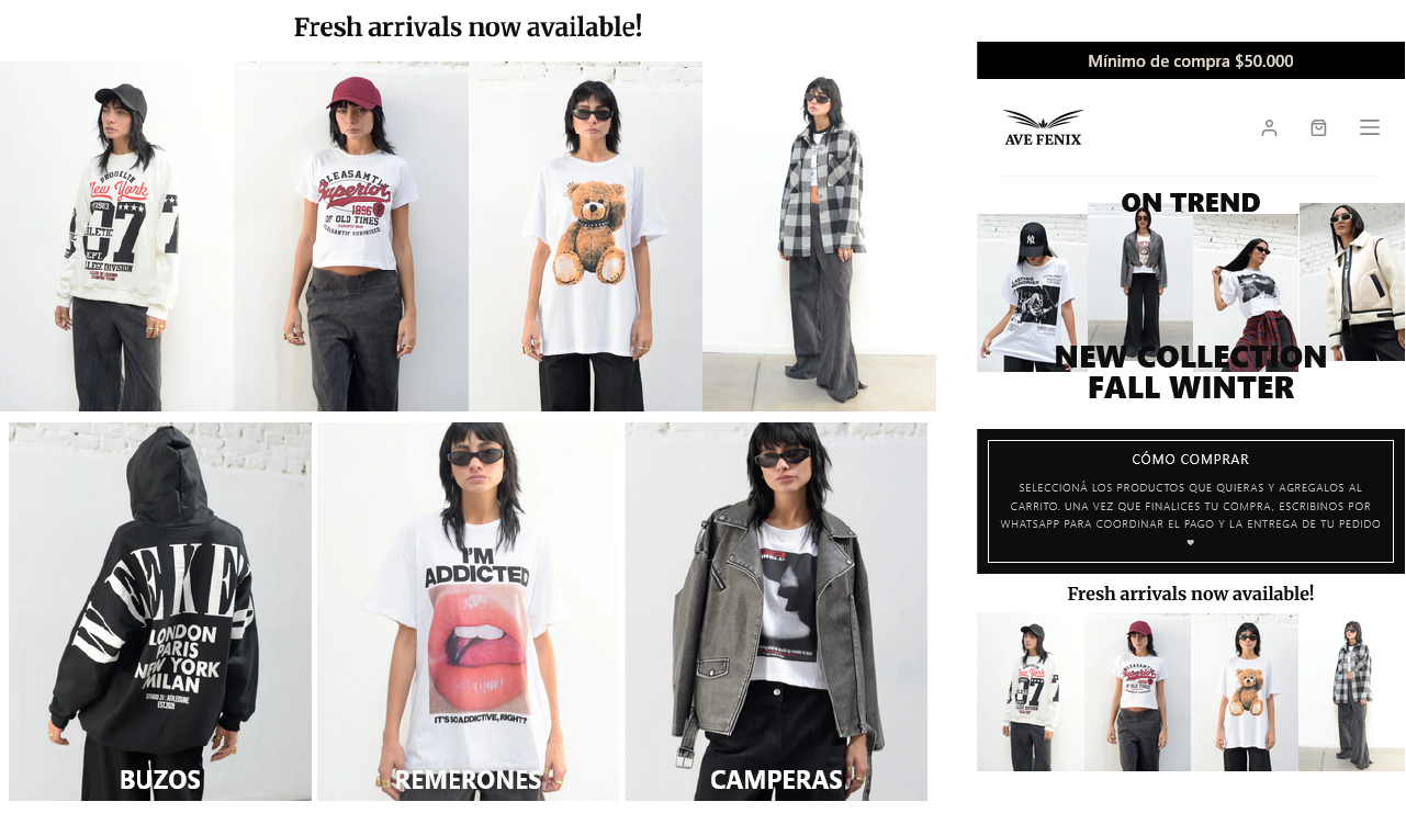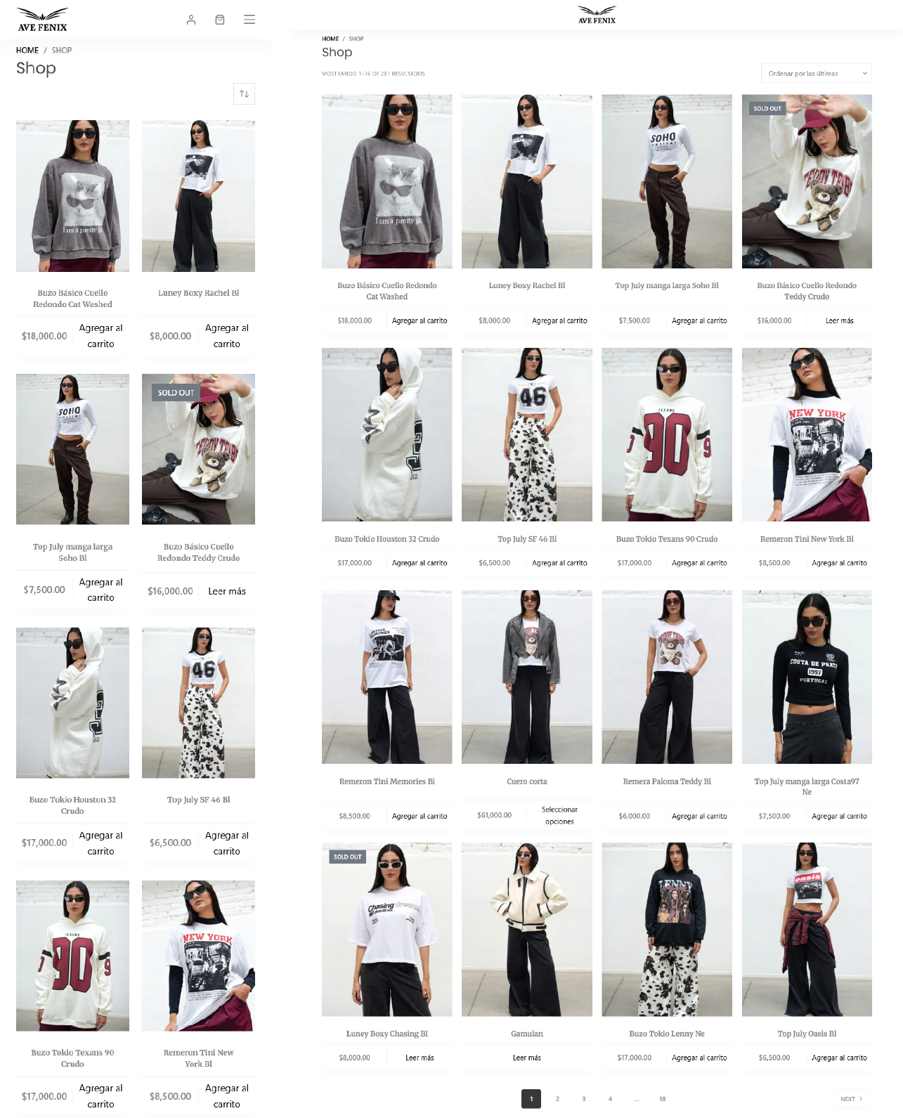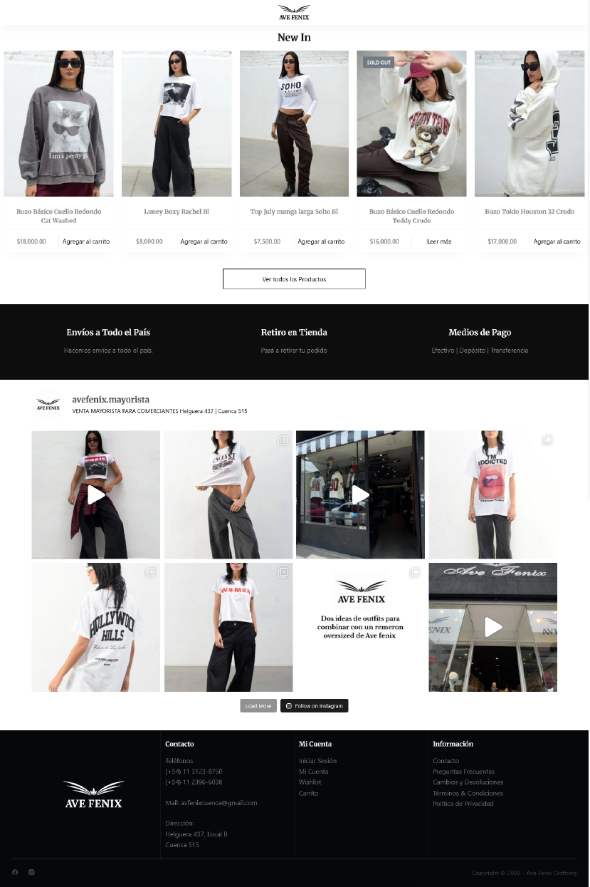 Diseño y desarrollo completo de Ave Fénix, una tienda online especializada en indumentaria femenina con foco en venta mayorista.