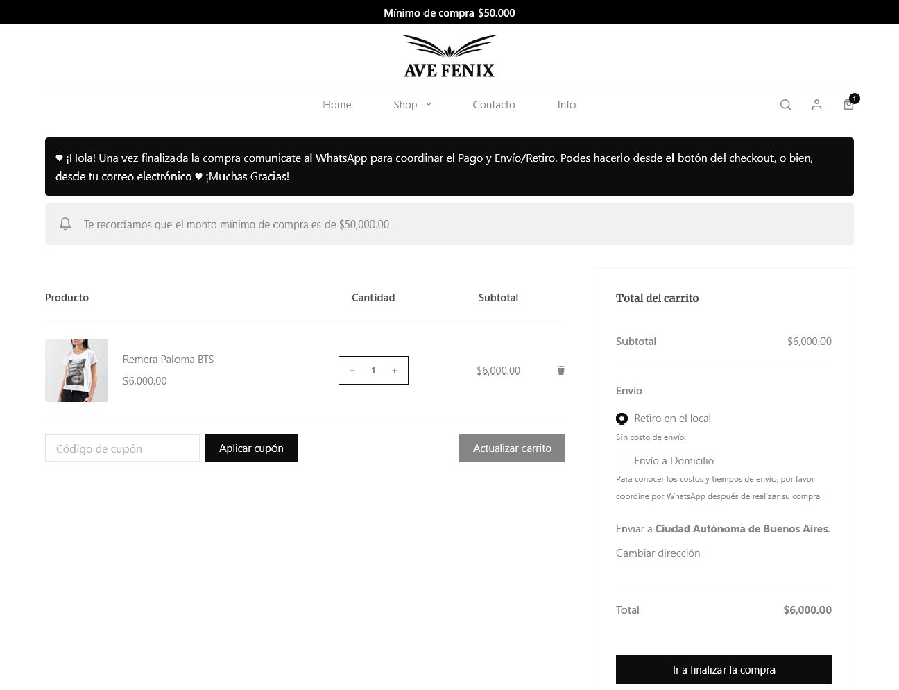 • Mensaje visible de compra mínima ($50.000 ARS).