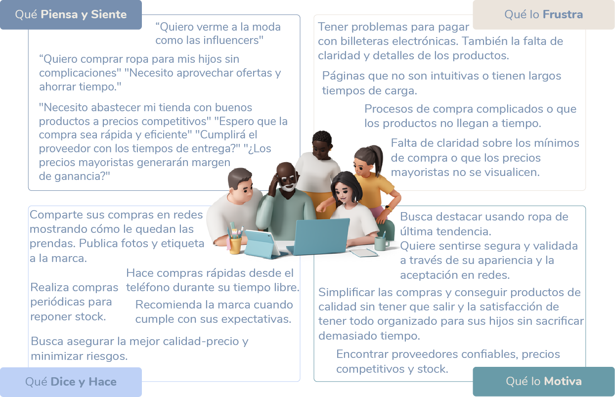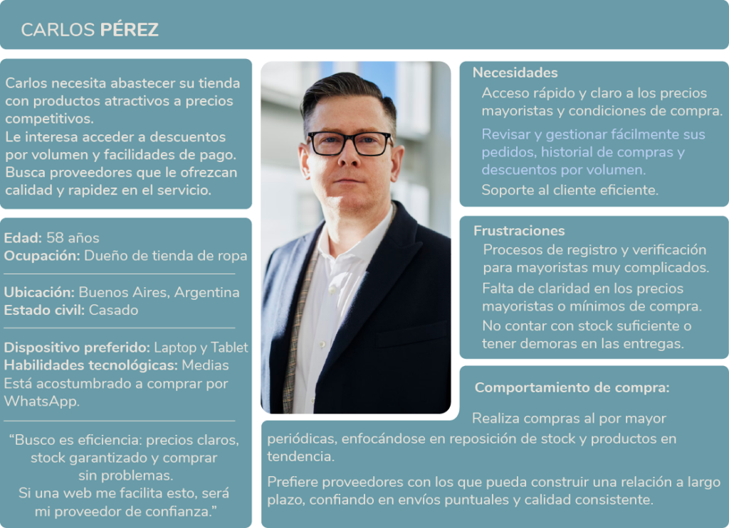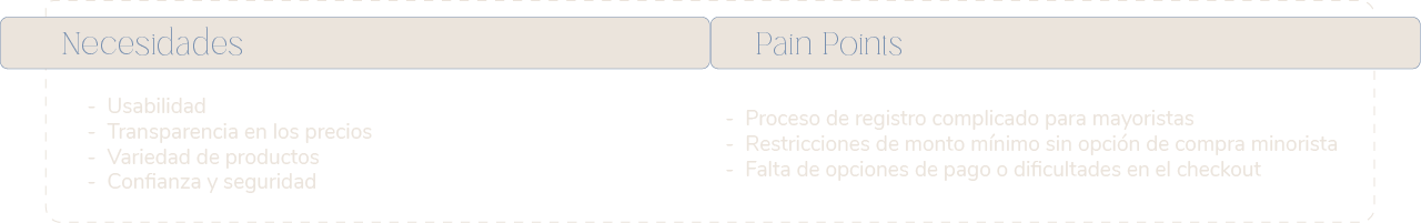Buscan eficiencia en la navegación, con acceso rápido a los productos, precios y requisitos de compra. Valoran acceder a ofertas especiales por volumen y soporte rápido para resolver cualquier problema en sus compras.