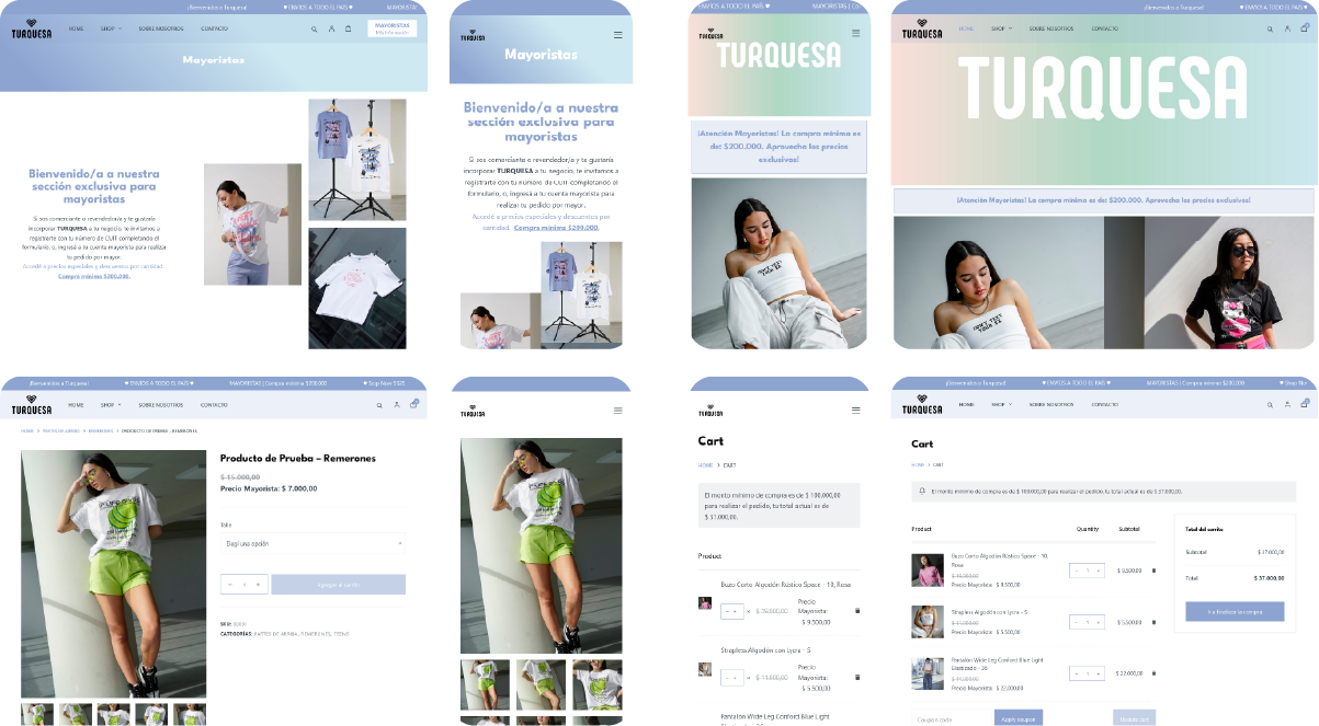 La marca necesitaba un e-commerce que permitiera gestionar la venta a dos tipos de clientes: mayoristas y minoristas, manteniendo una diferenciación clara en los precios y ofertas.
